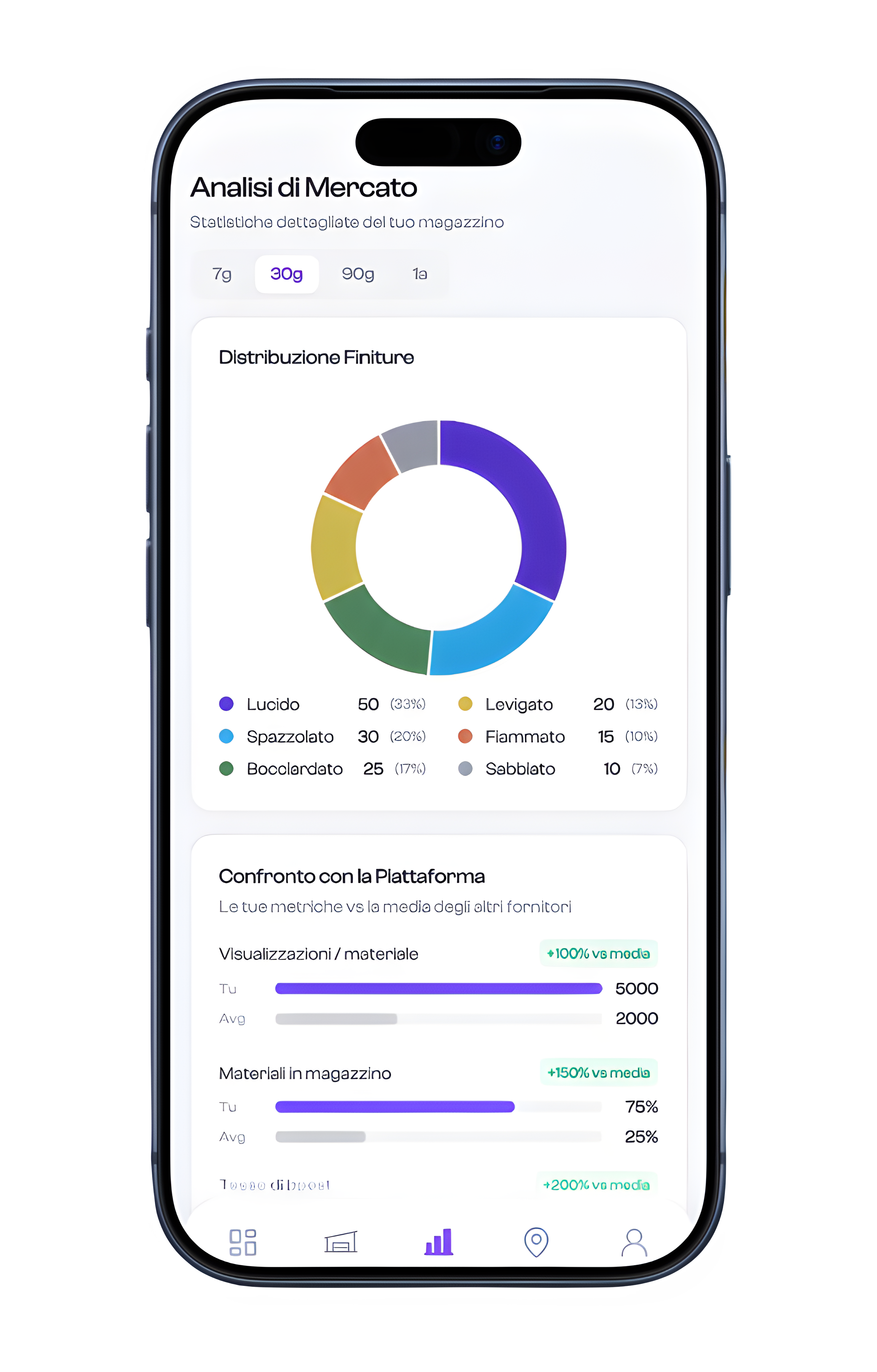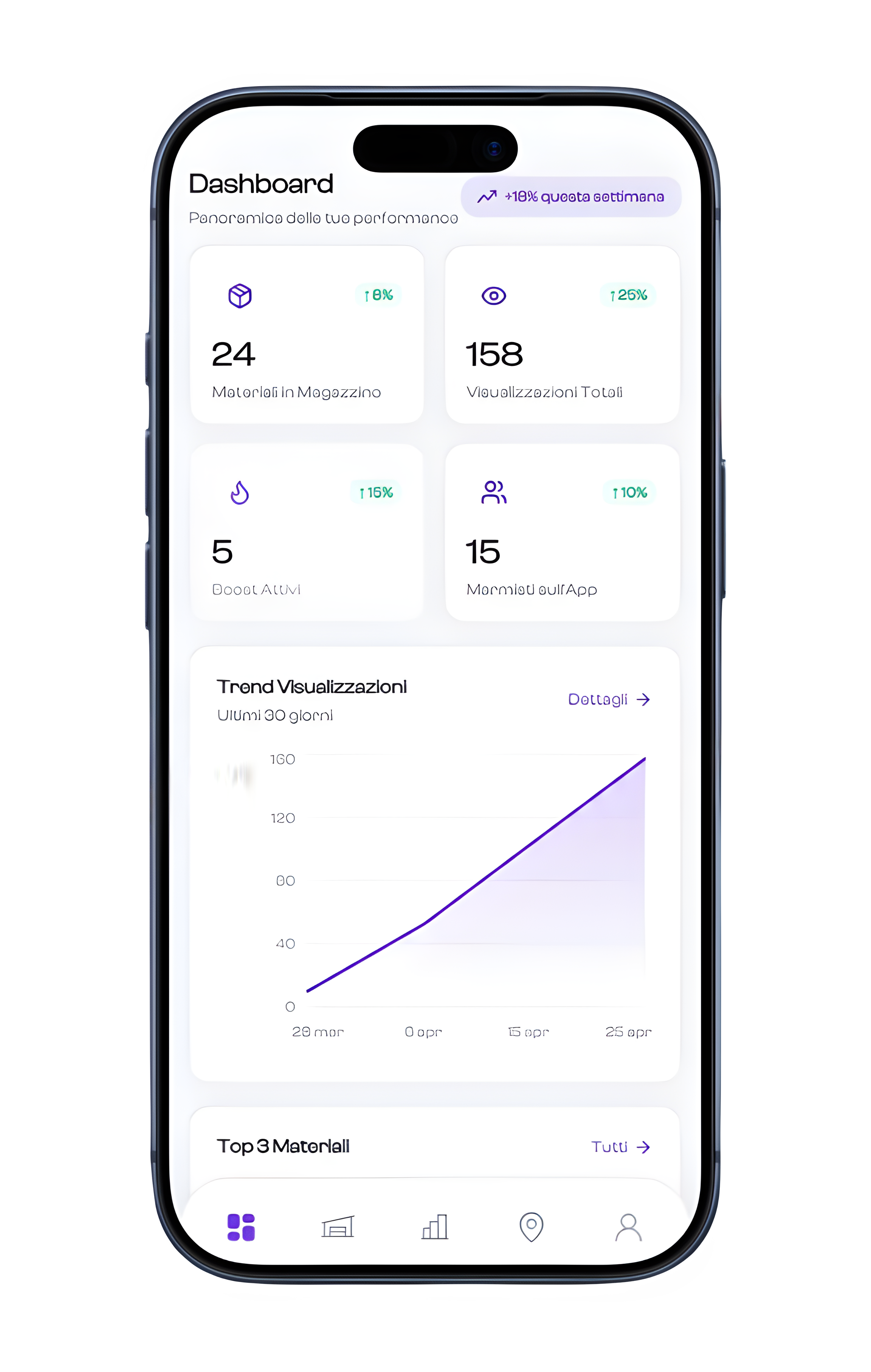 Monitora i tuoi materiali attraverso il magazzino personale, visualizza le statistiche e contatta le aziende vicine in modo semplice ed efficace.
