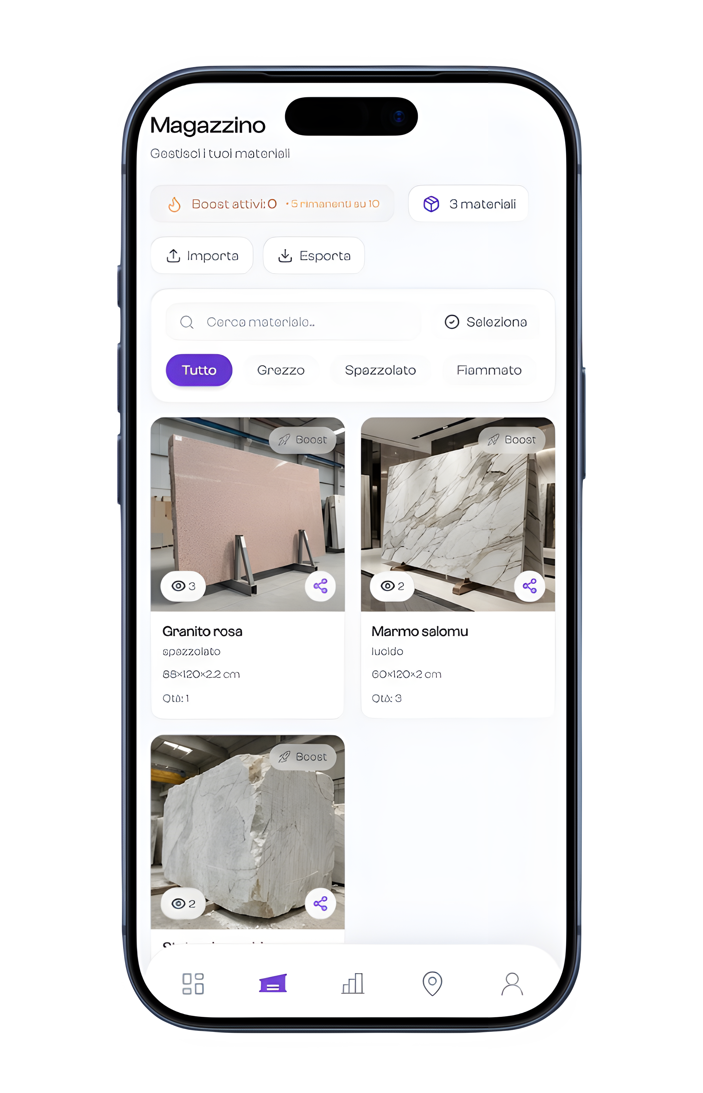 Scatta foto agli sfridi e mettili in vendita in pochi click. Zero frizioni, caricamento istantaneo e ricerca rapida dei materiali.